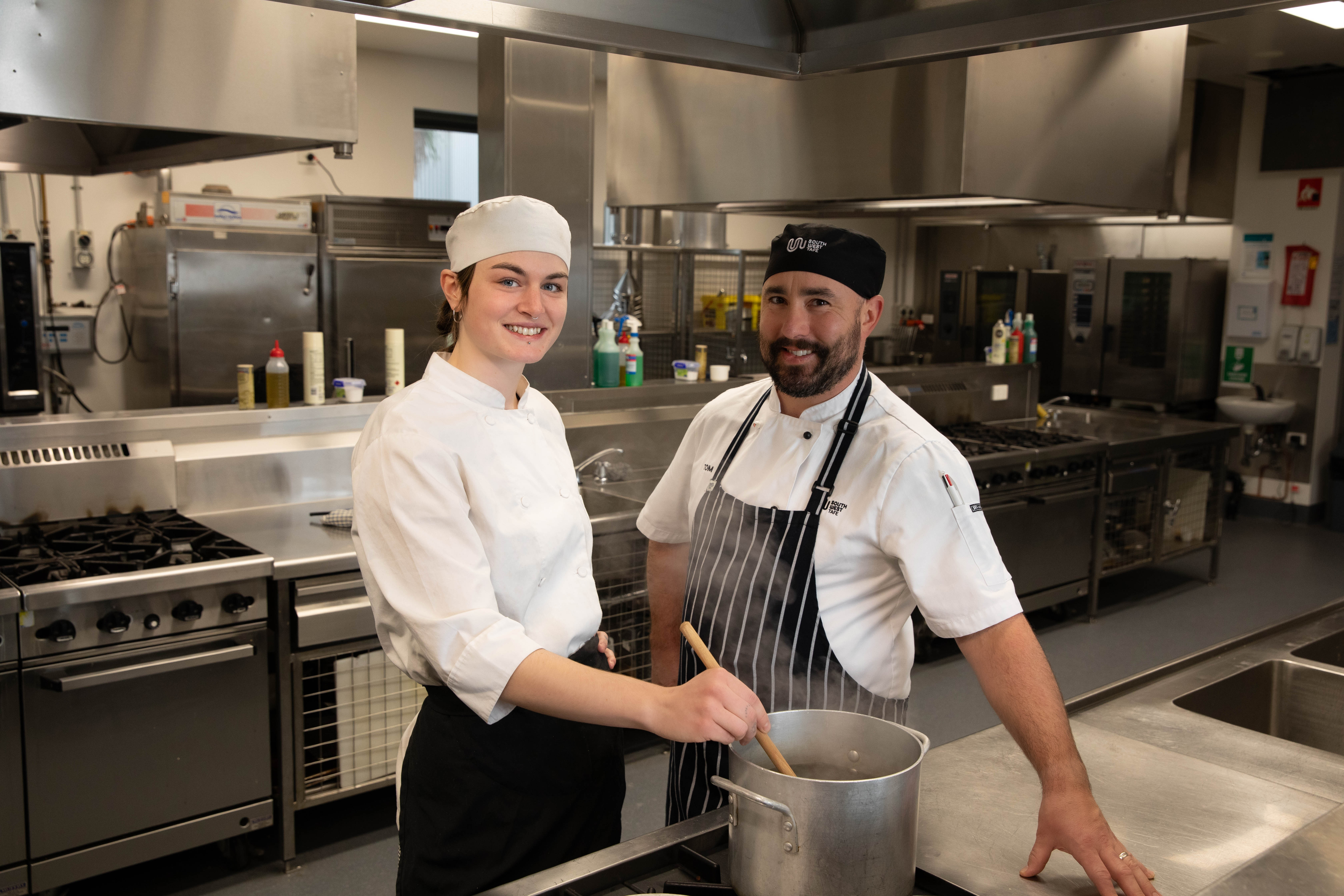 Our fully-licensed restaurant, Food Lab, production bakery and associated production kitchens serve as practical classrooms so you can gain the skills to be job-ready.